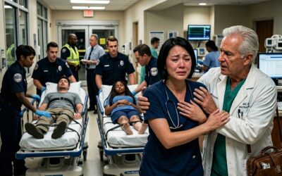Jeg arbejdede nattevagten, da min mand, min søster og min søn pludselig blev bragt ind, alle bevidstløse. Panikken ramte mig, og jeg løb direkte hen imod dem – men en læge trådte foran mig og stoppede mig stille. “Du kan ikke se dem endnu,” sagde han. Med hele min krop rystede jeg på ham og spurgte: “Hvorfor?” Han sænkede øjnene og hviskede derefter ord, der fik mit blod til at løbe koldt: “Politiet vil forklare alt, når de ankommer.”