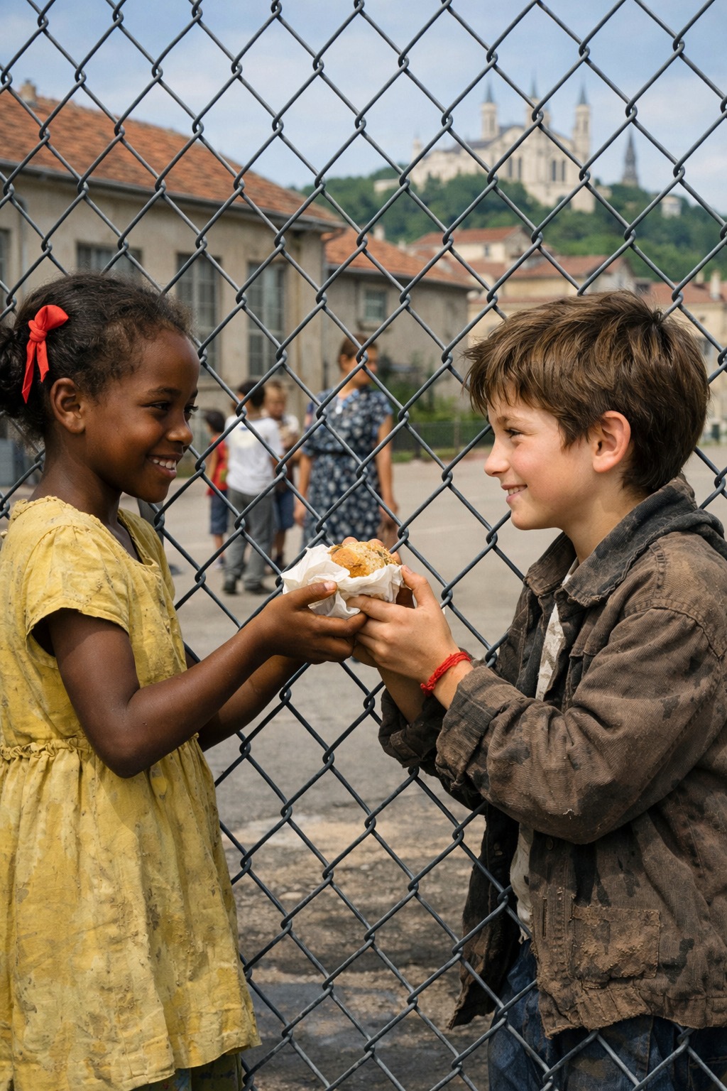 Hun var en lille sort pige, der levede i ekstrem fattigdom med sin familie, da hun for første gang så en sultende hvid dreng på den anden side af hegnet på Jean Jaurès-skolen i det sydlige Lyon.
