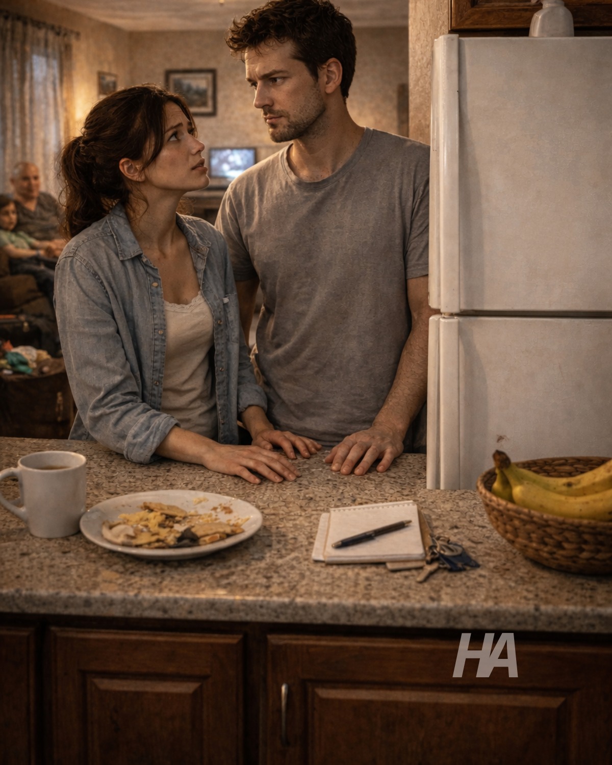 Indenfor vælter latteren ud af dit køkken i varme, rolige bølger, den slags der tilhører mennesker, der føler sig trygge og velkomne og sikre på deres plads. Men den tryghed, de nyder, blev købt med din overtid, dine morgener med flækkede neglebånd, dine sprungne frokoster, dine seks år med at sige måske næste måned til hver eneste lille fornøjelse, andre par tager uden at tænke. De spiser i det hus, du har fortjent, og diskuterer, hvor længe de kan blive, som om dit navn var pynt på en skøde, de allerede mentalt har streget over.