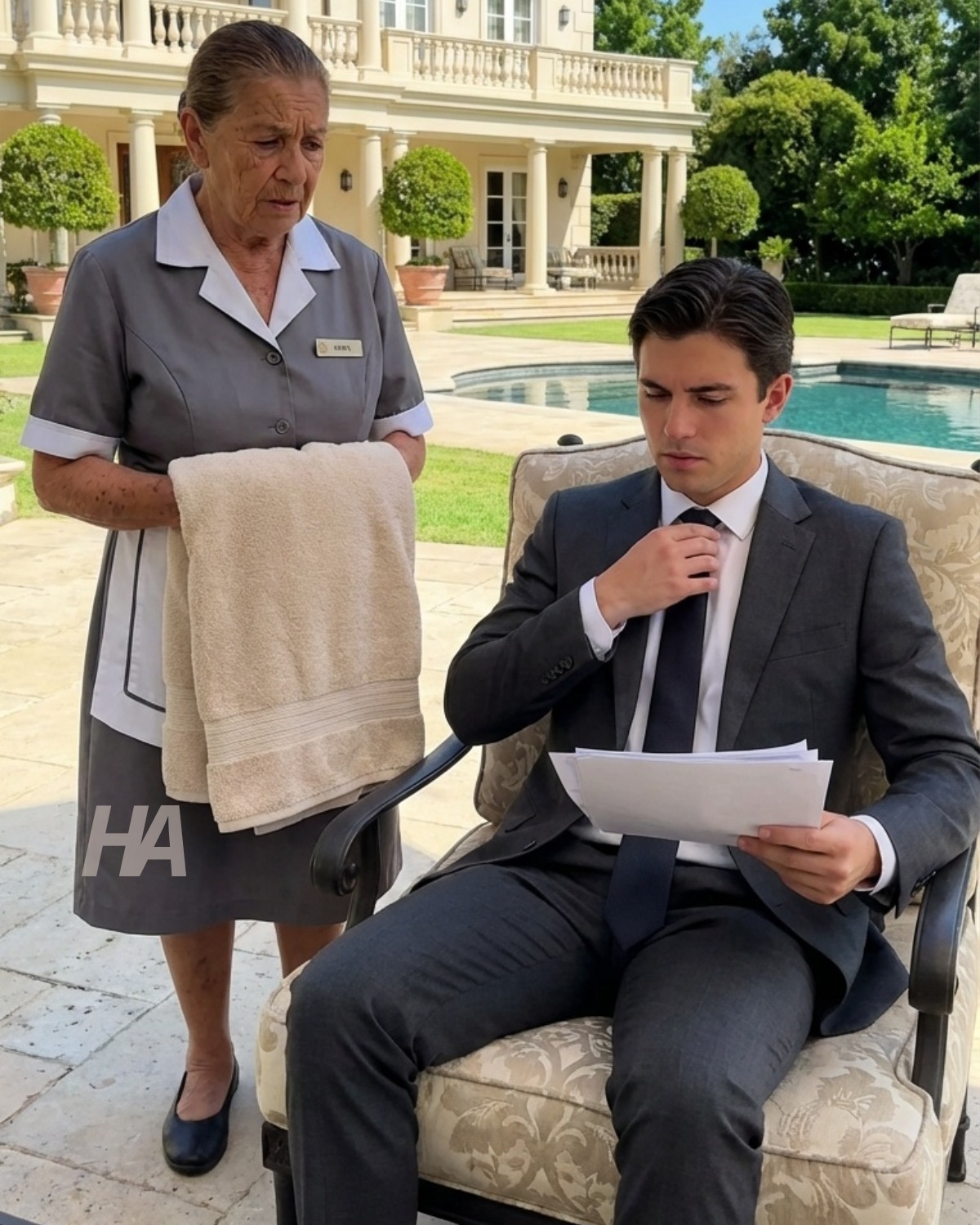 Hun skrubber marmorgulve, indtil de ligner stille vand, folder håndklæder med hjørner skarpe nok til at skære i, og fejer støv væk, som om hun fejer tiden væk. Men hun gør også noget andet, noget hun ikke tager betaling for. Hun omorganiserer husets luft. Hun åbner vinduer. Hun lader sollyset komme ind. Hun nynner, mens hun laver mad, og lyden er lille, men stædig, som håb, der nægter at dø.