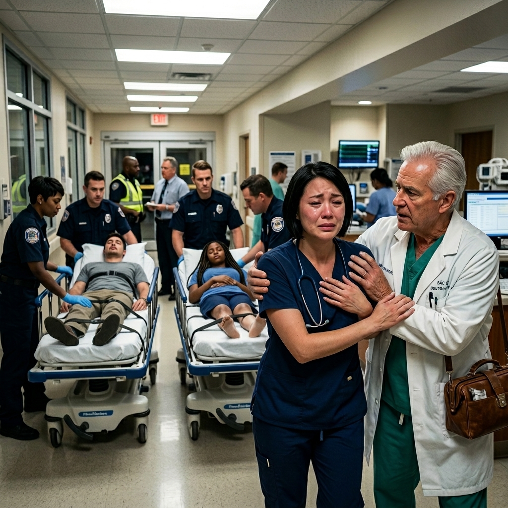 „Daniel!“ råbte jeg og skubbede mig forbi en sygeplejerske. „Emily – Lucas!“