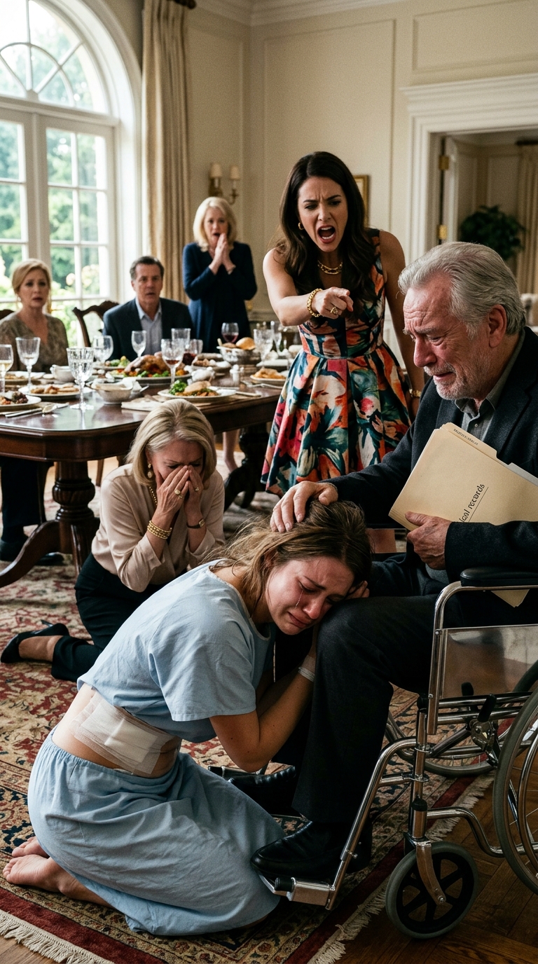 Jeg sad fuldstændig lammet, et spøgelse, der hjemsøgte min egen families fest. Jeg var Alice Jordan, 31 år gammel, druknende i ni ugers ulønnet sygeorlov, stirrende ned i en negativ bankbalance, plejende en krop, der aldrig ville fungere på samme måde igen. Og min mor stod foran to dusin mennesker og slettede aktivt mit offer fra menneskets historie.