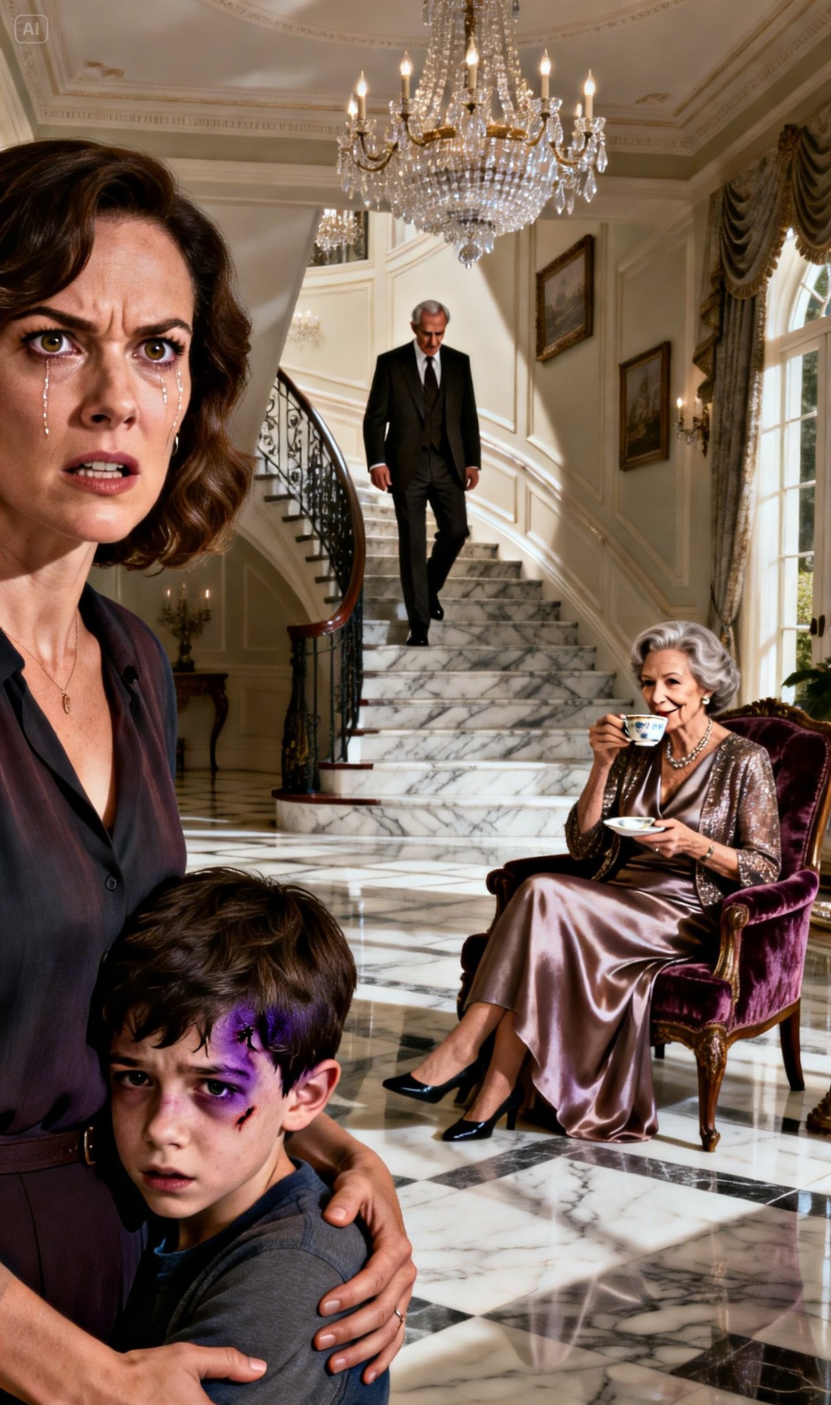 Eli sad sammenkrøbet i hjørnet af gulvet, hans lille krop vibrerede af en primal, stille rædsel. Hans nattøj var et snoet rod af bomuld, og hans yndlingsbamsepingvin, Barnaby, lå smidt væk i nærheden, det ene plastikøje revet væk og efterlod en hul hule fyld. Men det var mærket på Elis tinding - et blomstrende, vredt violet blåt mærke - der fik verden til at vippe om sin akse.