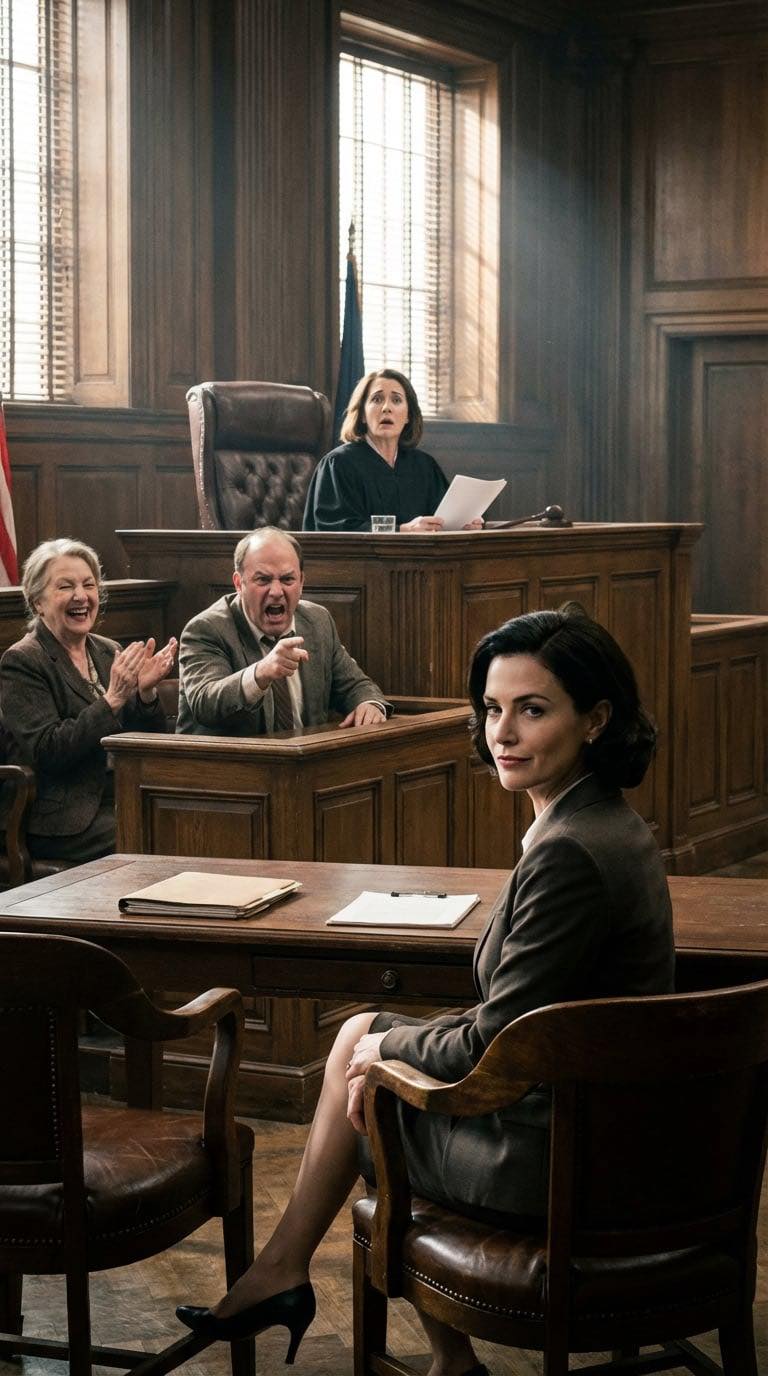 Min mor sad ved siden af ham og smilede let med hænderne foldet i skødet. Hun gav et par stille klapper, en refleks af støtte, som om sagen allerede var afgjort, som om vi var til en dimissionsceremoni og ikke en retssag, hvor de forsøgte at afmontere mit liv.