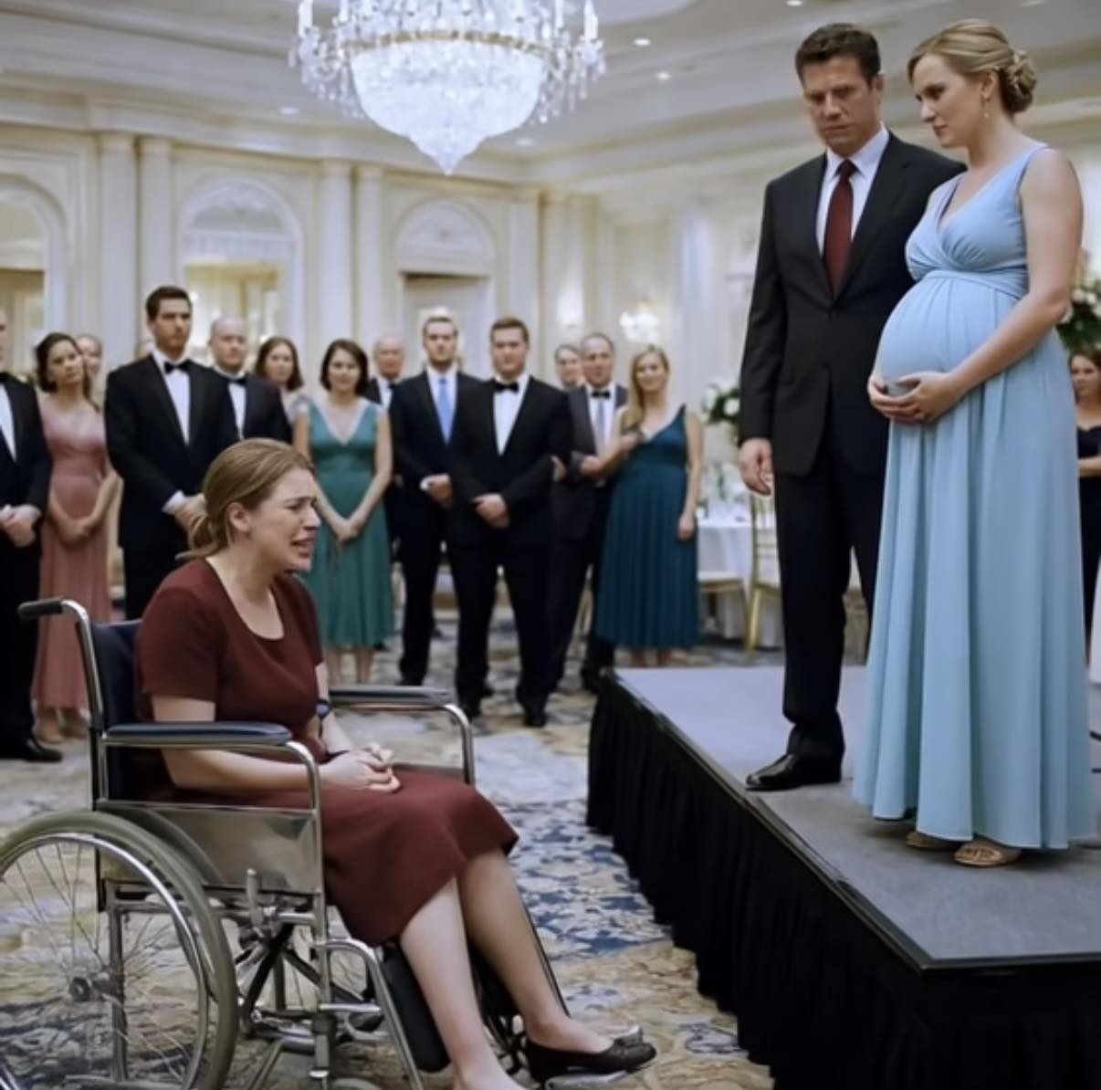 Victor står på platformen og holder stolt sin gravide elsker, klar til offentligt at erstatte sin kone.