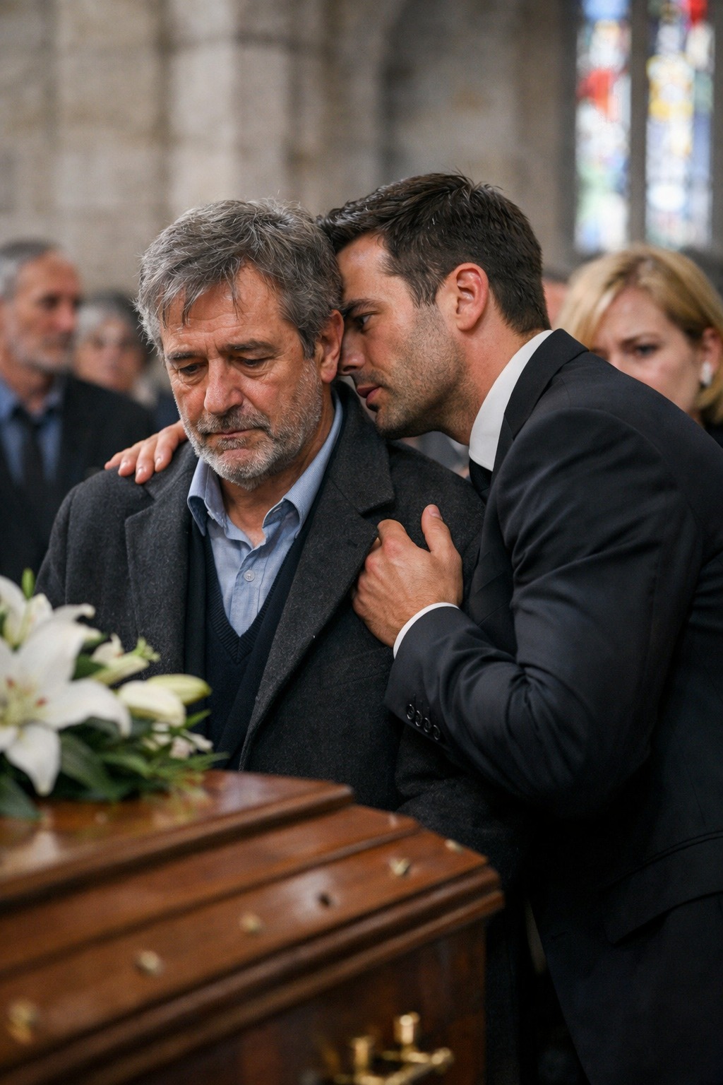 Jeg stod et par meter fra den lukkede kiste, mine arme hang slapt ned langs siden, ude af stand til at lave den mindste hjælpsomme gestus. Jeg stirrede på det lakerede træ, som om jeg med ren viljestyrke kunne få den til at åbne. Som om jeg kunne høre hendes stemme igen. Bare én gang. Lige længe nok til, at hun kunne sige: "Far, det er okay. Jeg har det fint. Det er en fejltagelse."